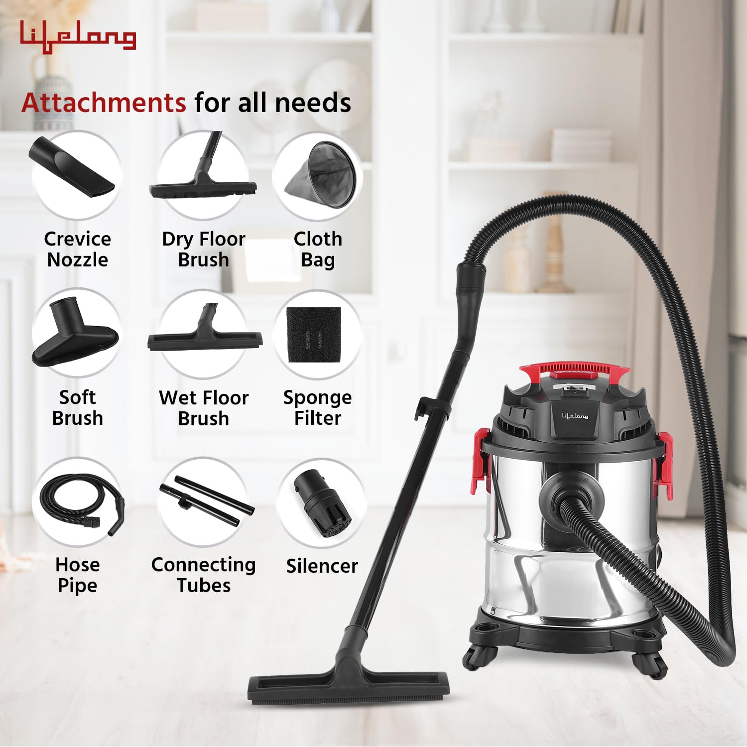 BLACK+DECKER BDWD08-B1 Wet and Dry Vacuum Cleaner with Cannister Body, 1000 W, Powerful Suction, 8L Capacity, 220V Vacuum Cleaner for Home Use, 1 Year Manufacturer Warranty(Red/Black)